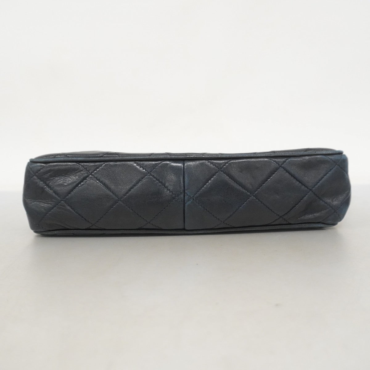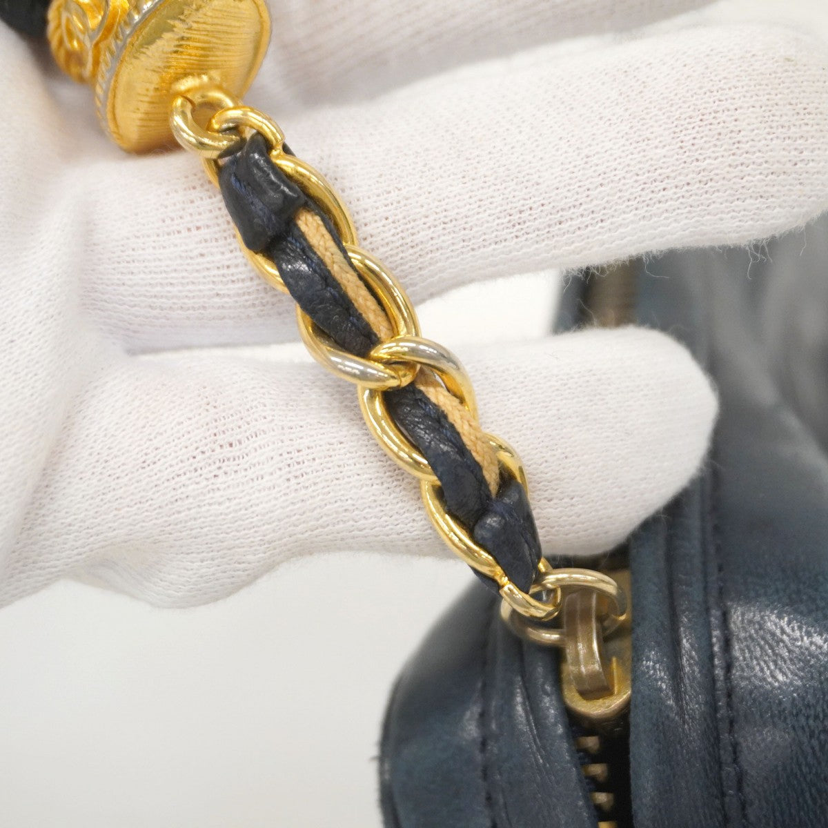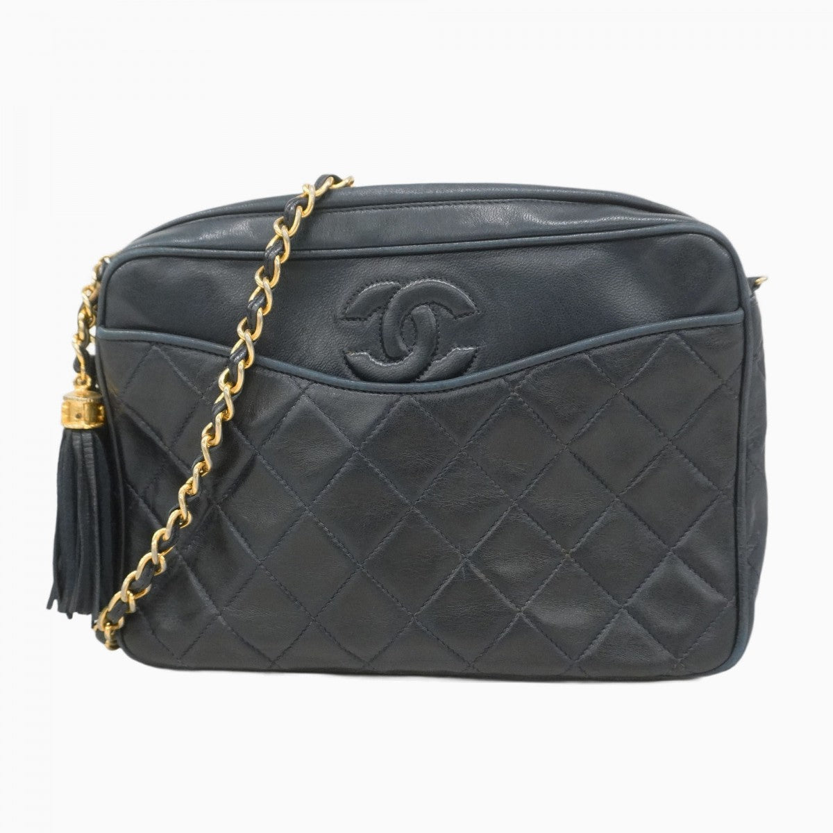 【5ie6011-h】シャネル ショルダーバッグ マトラッセ フリンジ付きチェーンショルダー ラムスキン ブラック ゴールド金具【中古】レディース