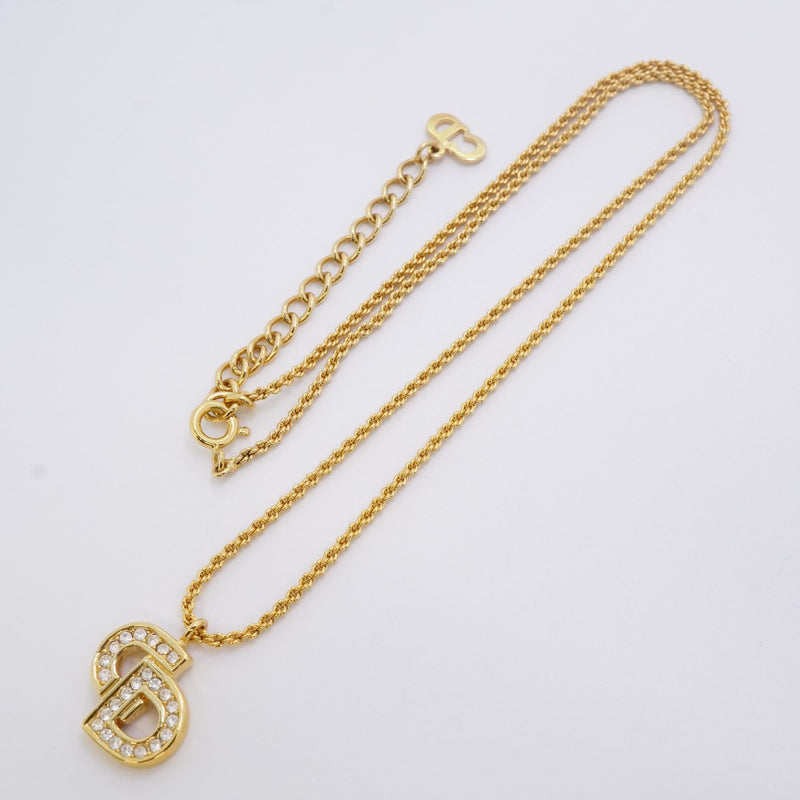 【5jmb0458】クリスチャンディオール ネックレス CDロゴ GPメッキ ラインストーン ゴールド【中古】レディース
