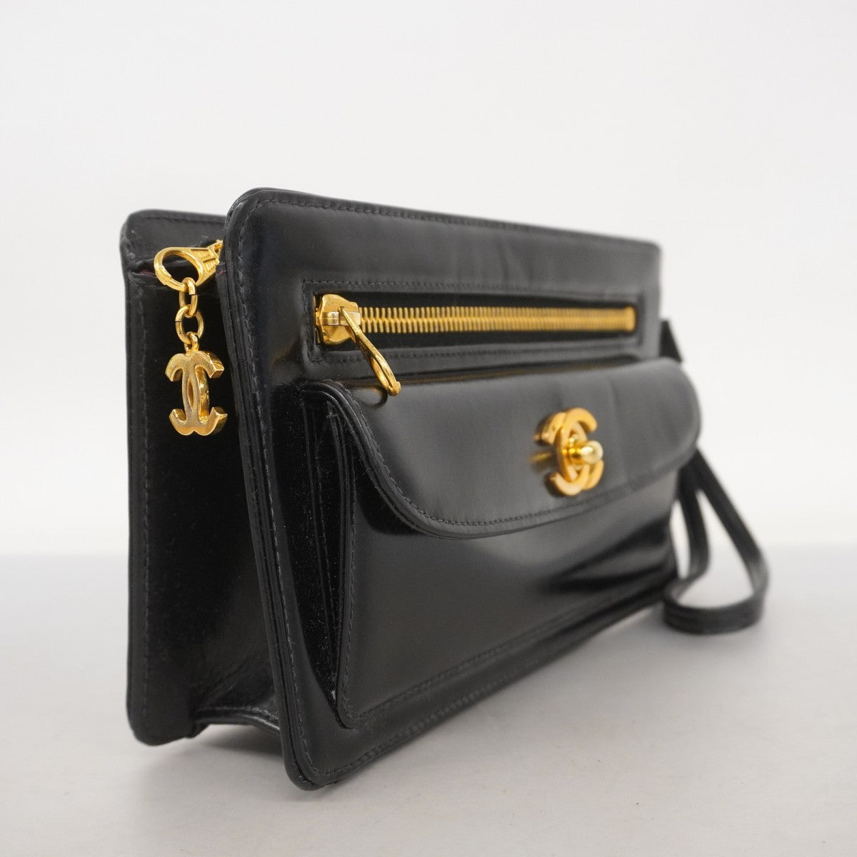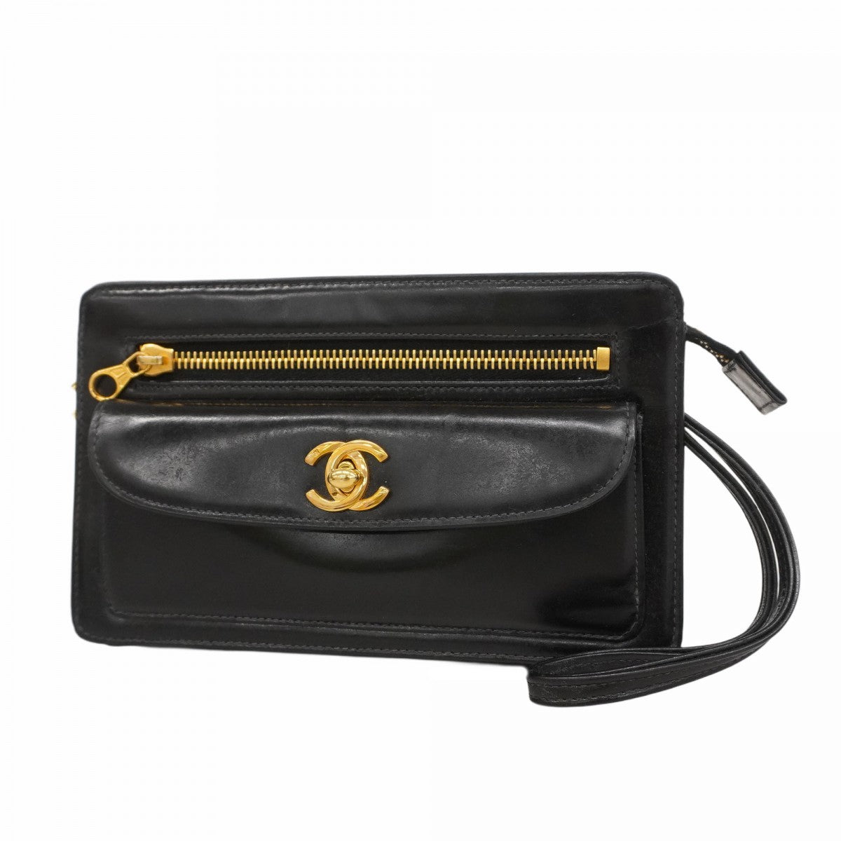【5mb1084】シャネル クラッチバッグ レザー ブラック ゴールド金具【中古】メンズ レディース ユニセックス