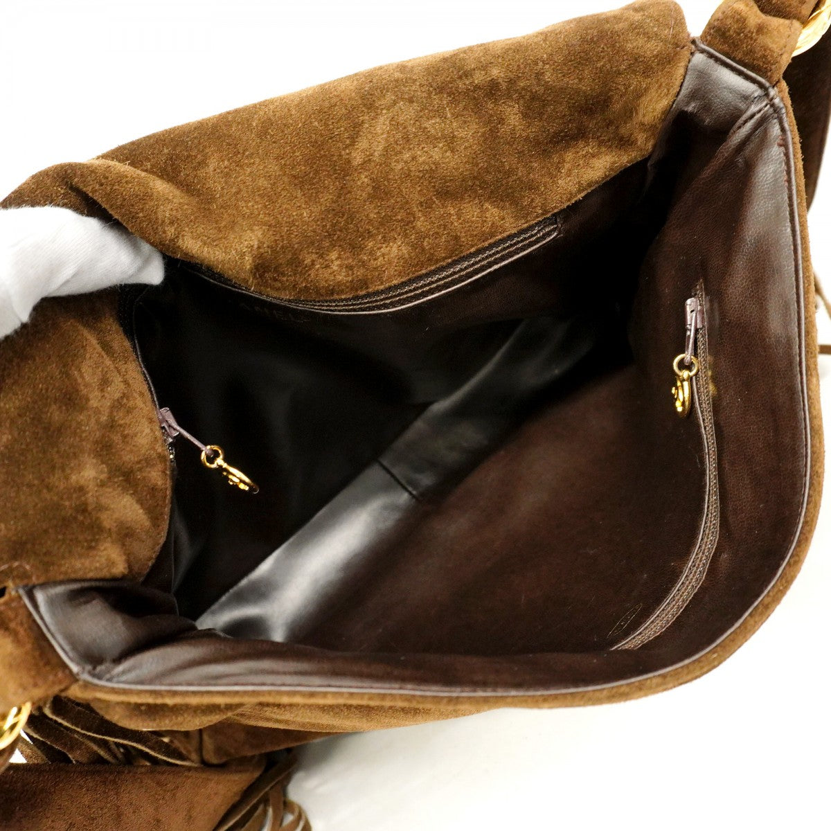 【5md5240】シャネル ショルダーバッグ フリンジ スウェード ブラウン ゴールド金具【中古】レディース