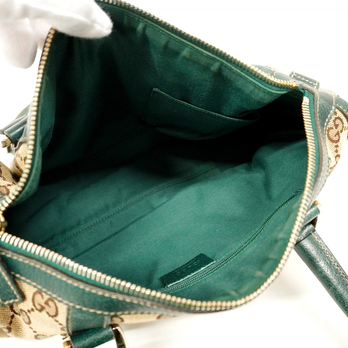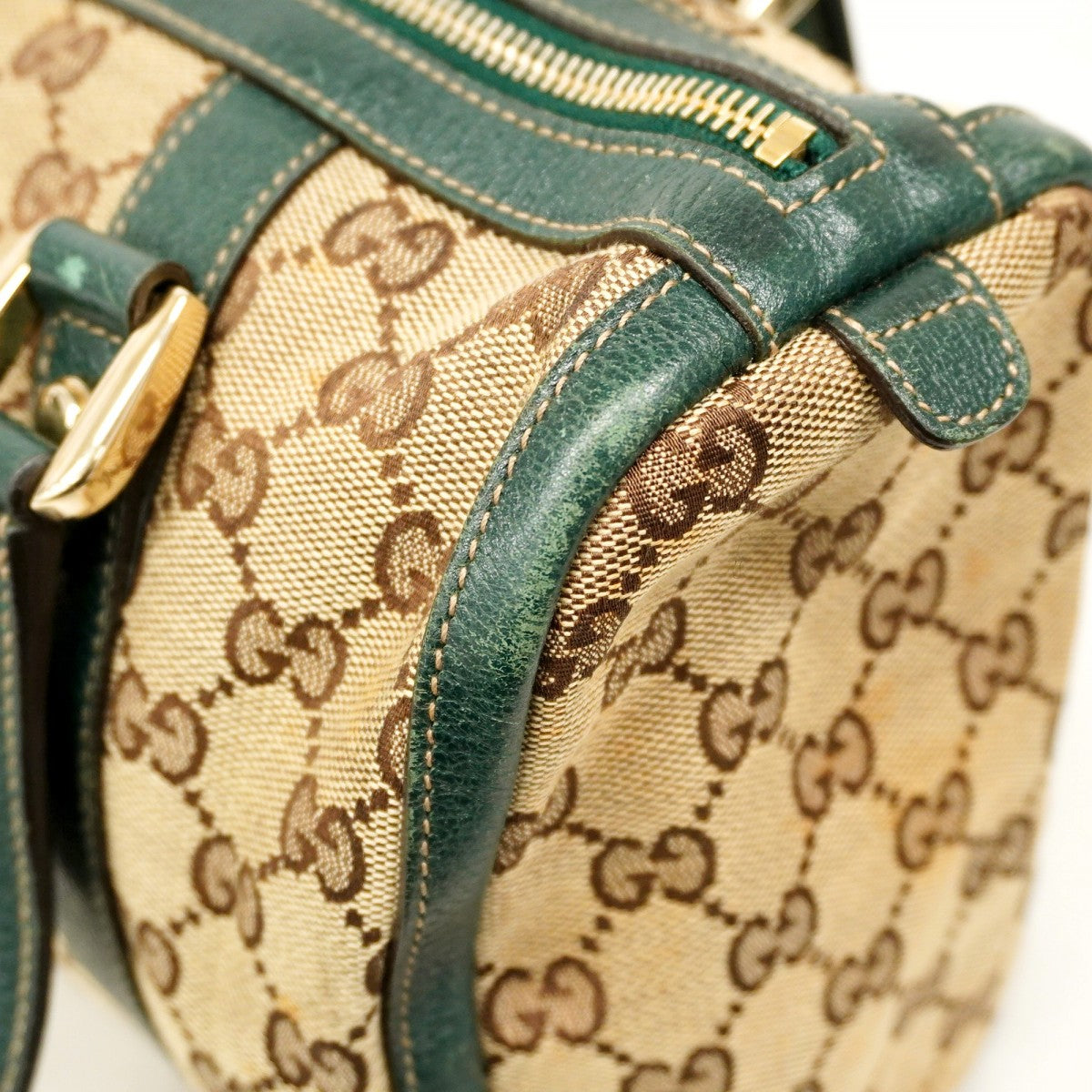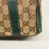 【5me5379】グッチ ハンドバッグ GGキャンバス アビー 130942 キャンバス ブラウン グリーン ゴールド金具【中古】レディース