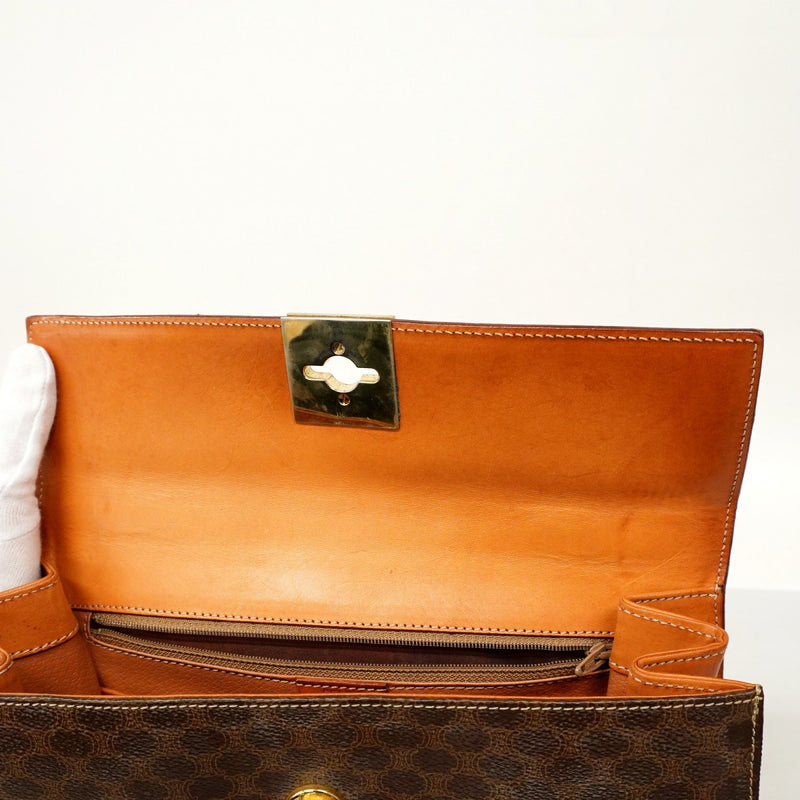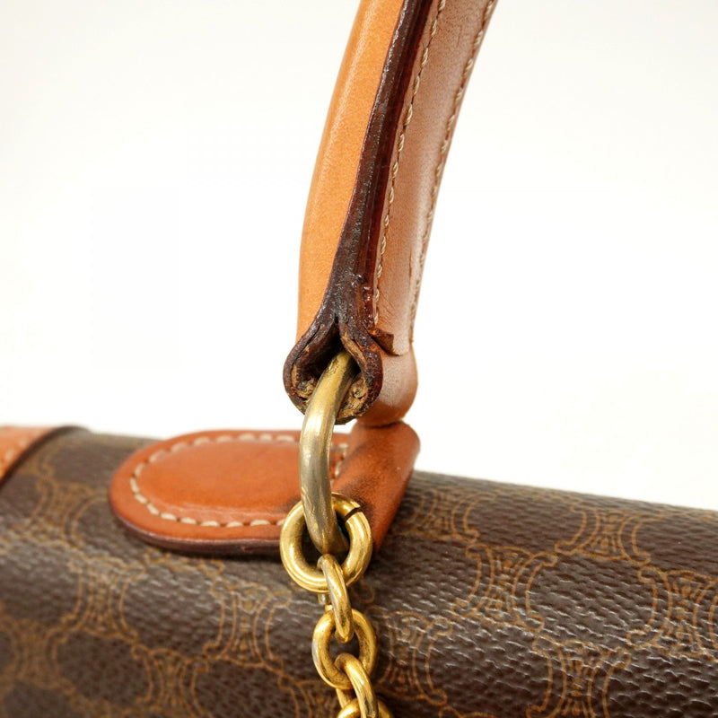 【5me5381】セリーヌ ハンドバッグ マカダム PVC ブラウン ゴールド金具【中古】レディース